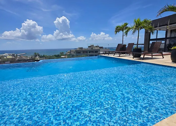 Das 40 m² große Apartment A Perfect Place - Rooftop Views Of The Caribbean - Jacuzzi Playa del Carmen liegt im Stadtviertel Zentrum, ca. 5 Gehminuten von der Quinta Alegría entfernt, und bietet ein Fitnesscenter.